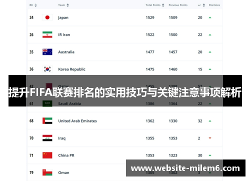 总的来说,FIFA联赛的排名提升不仅仅依赖于技术的提高,还需要综合考虑战术运用、心理素质和自我分析等方面的因素。通过不断积累经验和提升自己,你的排名必将稳步上升,享受更多的胜利与挑战。
